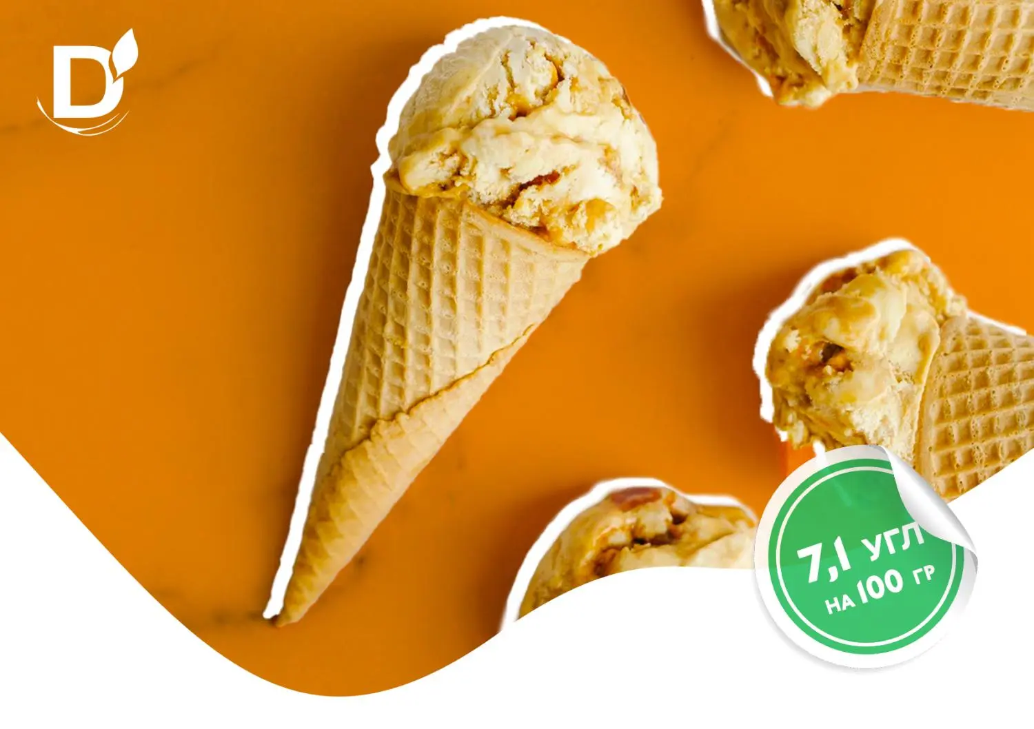 28,4 угл на все мороженое / 7,1 угл на 100 грамм (пересчитайте в своем случае)