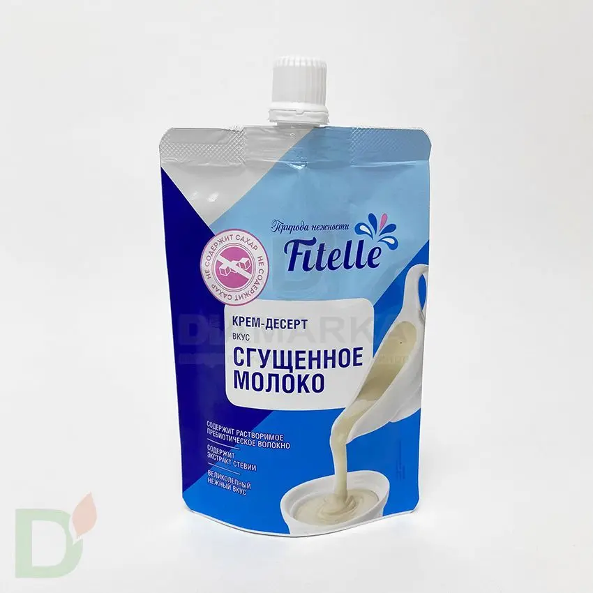 <h2>Вкуснее и полезнее обычной сгущенки</h2> Крем-десерт "Сгущеное молоко" от Fitelle - самый настоящий пп-десерт! Вы думали такое не возможно? Уверяем вас, в 21 веке возможно и не такое;)<br> <br> Снизить калорийность и содержание углеводов удалось благодаря использованию в рецептуре десерта обезжиренного молока и натуральных подсластителей. Сгущенка Фитэль может использоваться как самостоятельный десерт, а также как добавка к каше, блинчикам, творогу и т.д.<br> <h2>Продукт дополнительно обогащен пребиотиками</h2> ...а именно инулином. Это благотворно влияет на здоровье ЖКТ.<br> <h2>Пищевая и энергетическая ценность на 100 г продукта</h2> 190 кКал / 790 кДж, белки - 5.0 г, жиры - 4.0 г, углеводы - 52.0 г.<br> <h2>Состав крем-десерта "Сгущенное молоко" без сахара</h2> смесь подсластителей (мальтит, экстракт стевии), мальтитный сироп, вода, молоко сухое обезжиренное с жирностью не более 1,5%, молочного жира, инулин, загустители (гуаровая камедь, камедь рожкового дерева), ароматизатор "Сгущенное молоко", натуральный пищевой консервант сорбиновая кислота<br> <br> <b>Масса нетто: 100 грамм</b>