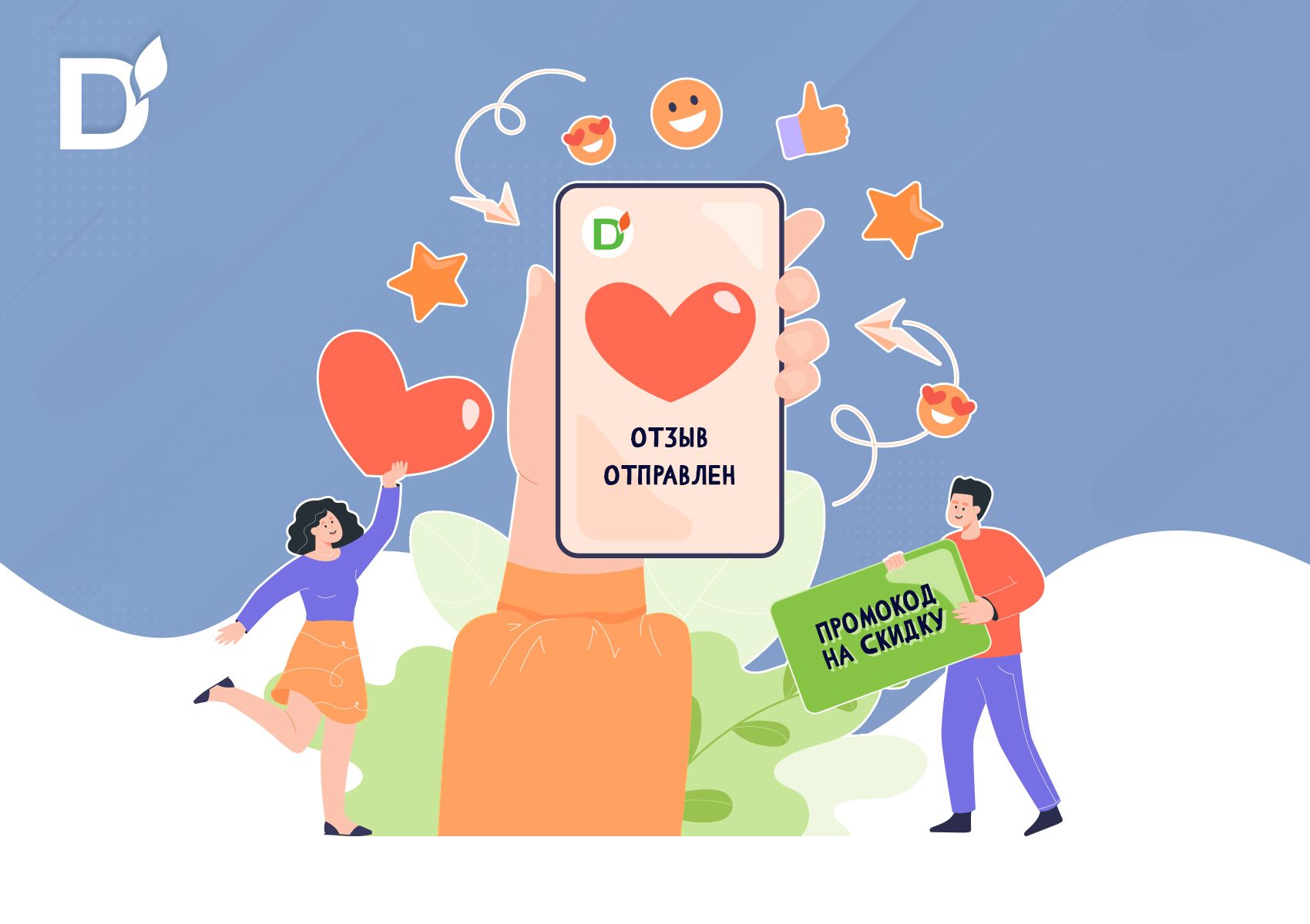 • оставьте отзыв о товарах или о нас, как компании, на сайте или своей личной страничке в соцсети