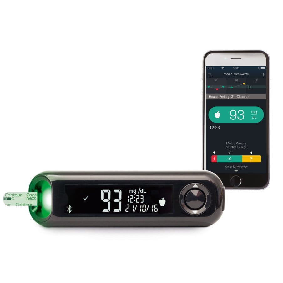CONTOUR Diabetes* - приложение, специально разработанное для совместной работы с глюкометрами Contour Plus One. При помощи Bluetooth глюкометр будет передавать данные о вашем сахаре крови на смартфон, где вы можете сделать любые другие пометки (примечания до еды/после еды, количество съеденного, подробная раскладка меню, физическая активность, инъекции инсулина и т.п.), есть возможность также прикреплять фотографии. Приложение составит график из полученных с глюкометра данных.