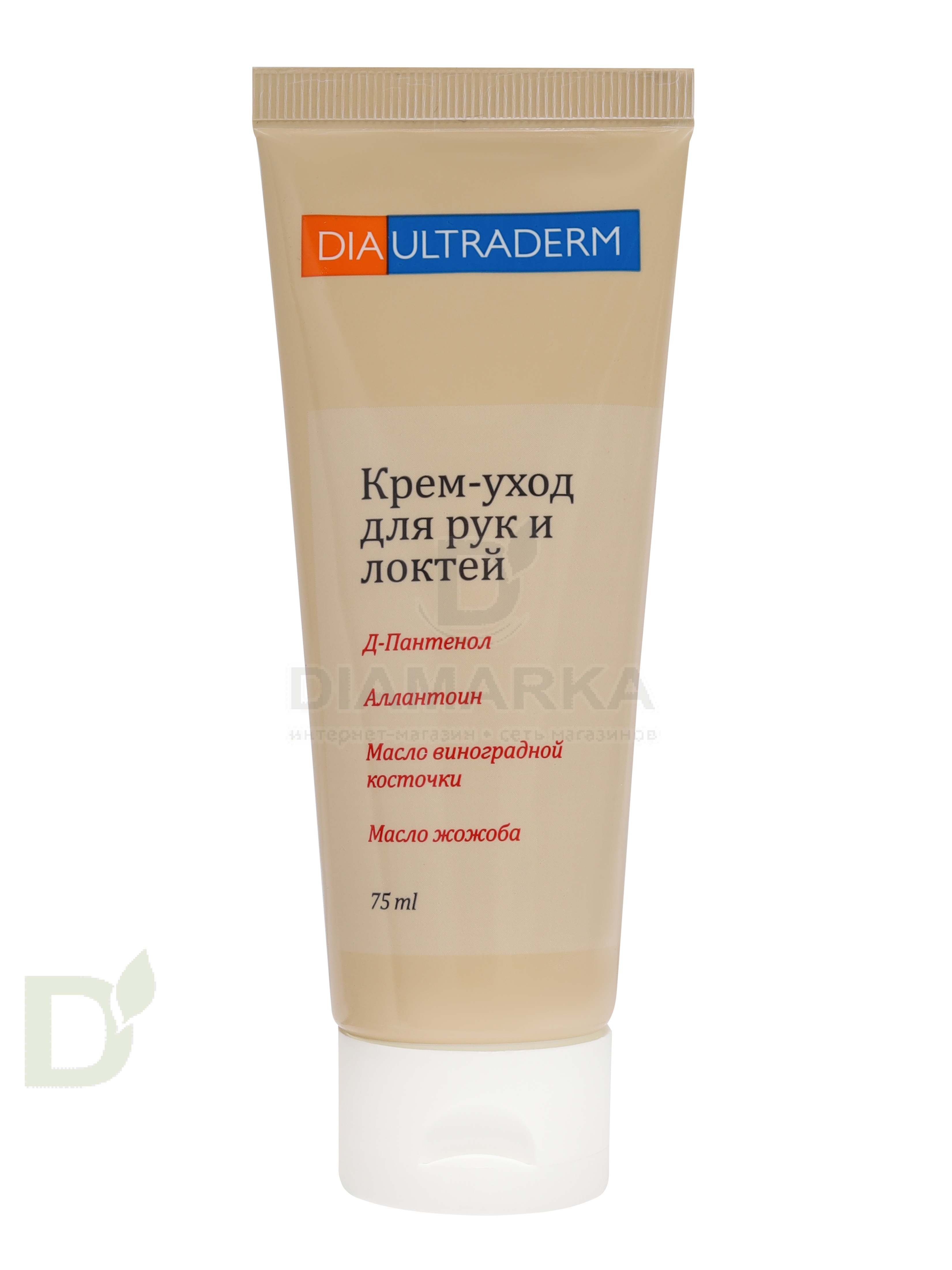 <h2>Крем для ухода за сухой и обезвоженной кожей</h2> Супер эффективный крем с быстрым действием. Оказывает на кожу комплексное воздействие:<br> <ul> <li>увлажняет</li> <li> уменьшает шелушения</li> <li> снимает раздражения</li> <li> восстанавливает защитные функции эпидермиса</li> </ul> <h2>За супер увлажнение отвечают следующие компоненты</h2> <ul> <li>Д-Пантенол. Способствует регенерации кожи, обладает противовоспалительным действием</li> <li> Аллантоин. также отвечает за процессы восстановления эпидермиса и деления клеток</li> <li> Масла виноградной косточки и жожоба. Смягчают, питают и увлажняют сухую кожу</li> </ul> Все вместе эти компоненты не только устраняют неприятные ощущения, связанные с сухостью, но и помогают вернуть коже красивый, здоровый, ухоженный вид!<br> <h2>Как использовать Диаультрадерм для рук и локтей</h2> Наносите крем на чистую и сухую кожу массирующими движениями. Втирайте до полного впитывания. Используйте по мере необходимости.<br> <br> Срок годности: 24 месяца с даты производства.<br> Объем: 75 мл